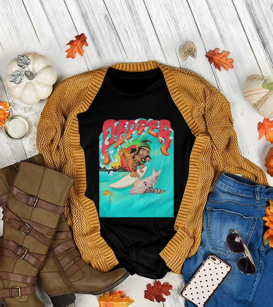 Pepper Surfer Riding Waves With Tattooed Dolphin T-Shirt