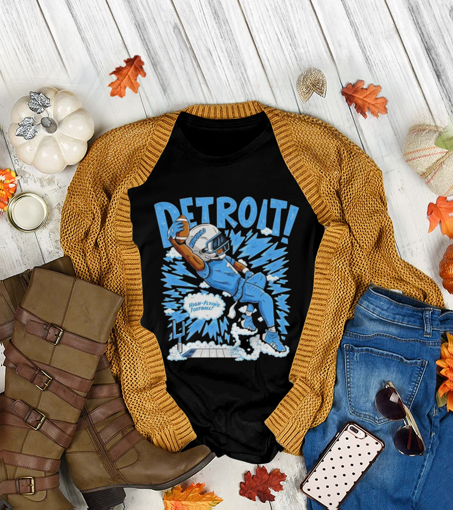 The Detroit Lions Jameson Williams High-Flying Football Kiwiclop Collection T-shirt is designed for everyday wear and a consistent fit. Fabric is pre-shrunk ring-spun cotton with durable stitching. See the size chart below for exact measurements.