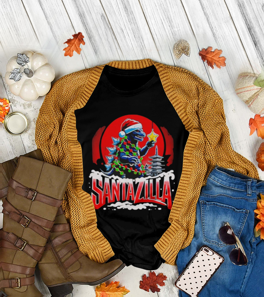 Santazilla Kaiju Christmas Japanese Monster Dinosaur Holiday Celebration T-Shirt