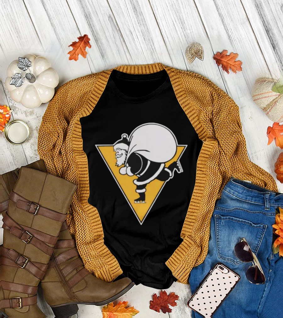 Santa Skates Ugly Christmas Penguin Triangle Santa Claus Skating Sack T-Shirt
