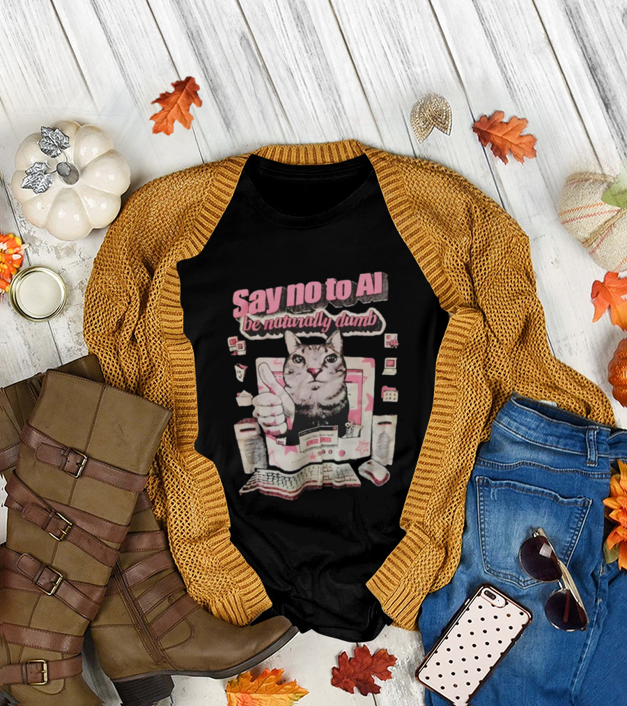 Say No To AI Be Naturally Dumb Cat With Computer And Thumbs Up T-Shirt