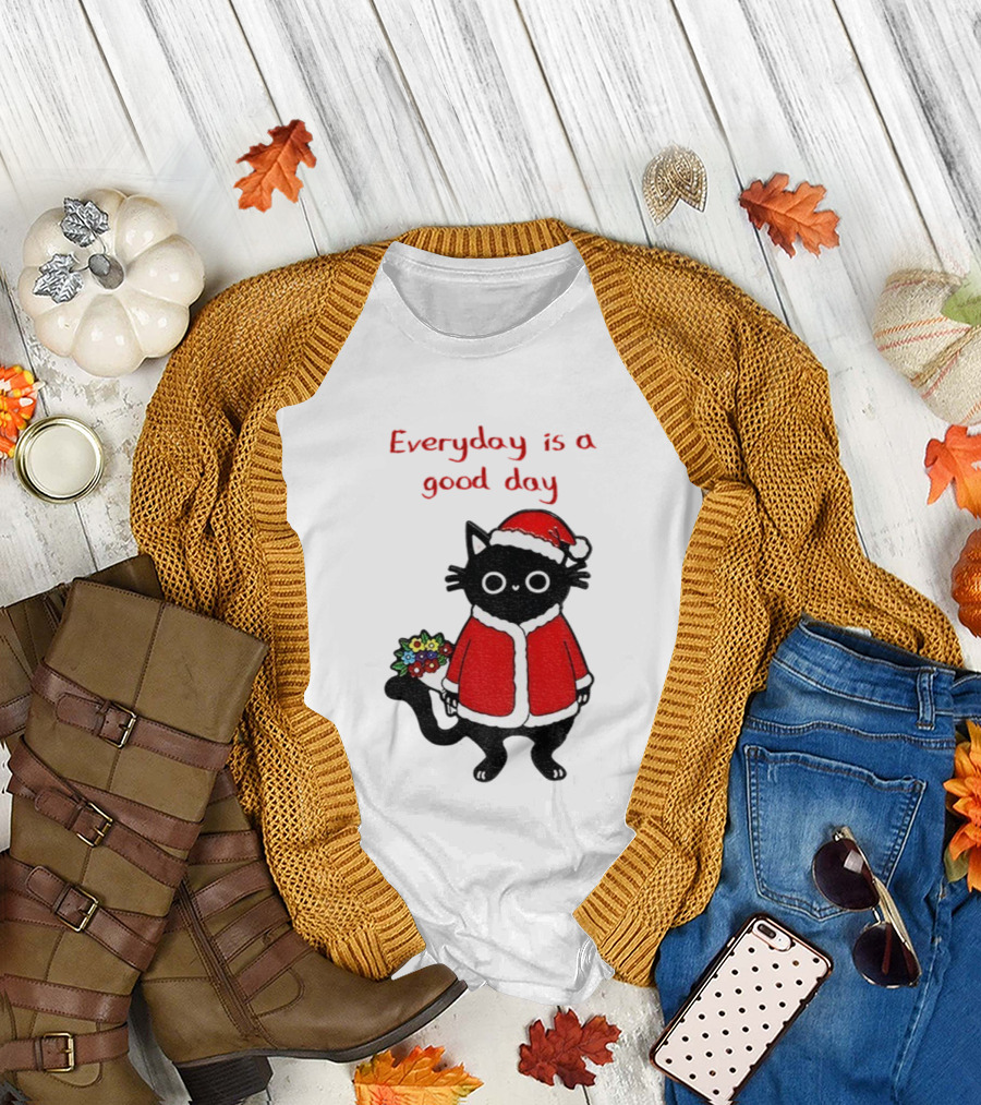 Everyday Is A Good Day Black Cat Santa Merry Christmas T-Shirt
