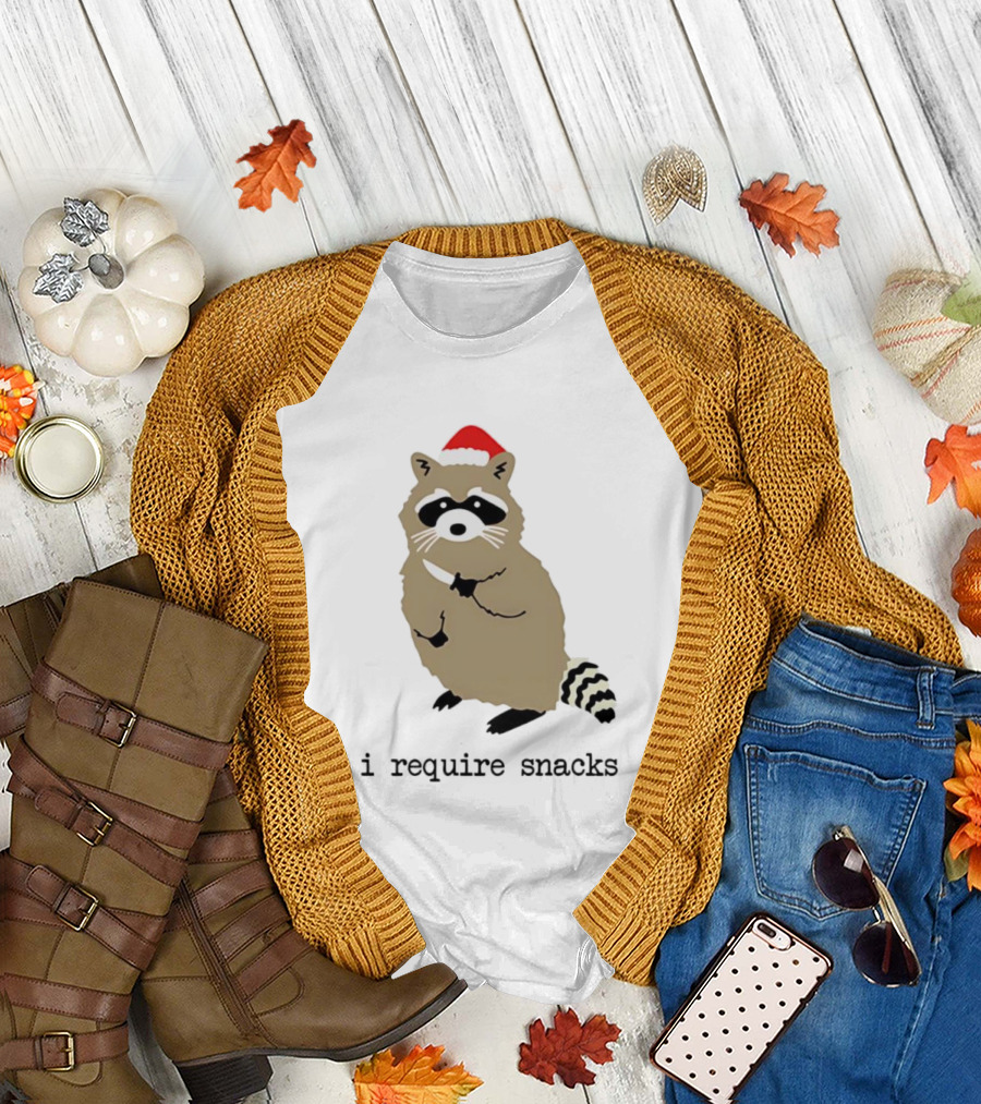 Raccoon Santa Hat I Require Snacks Festive Holiday Humor T-Shirt