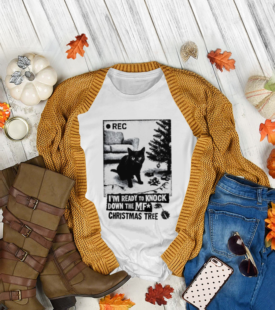 REC Black Cat Ready To Knock Down The MF Christmas Tree T-Shirt