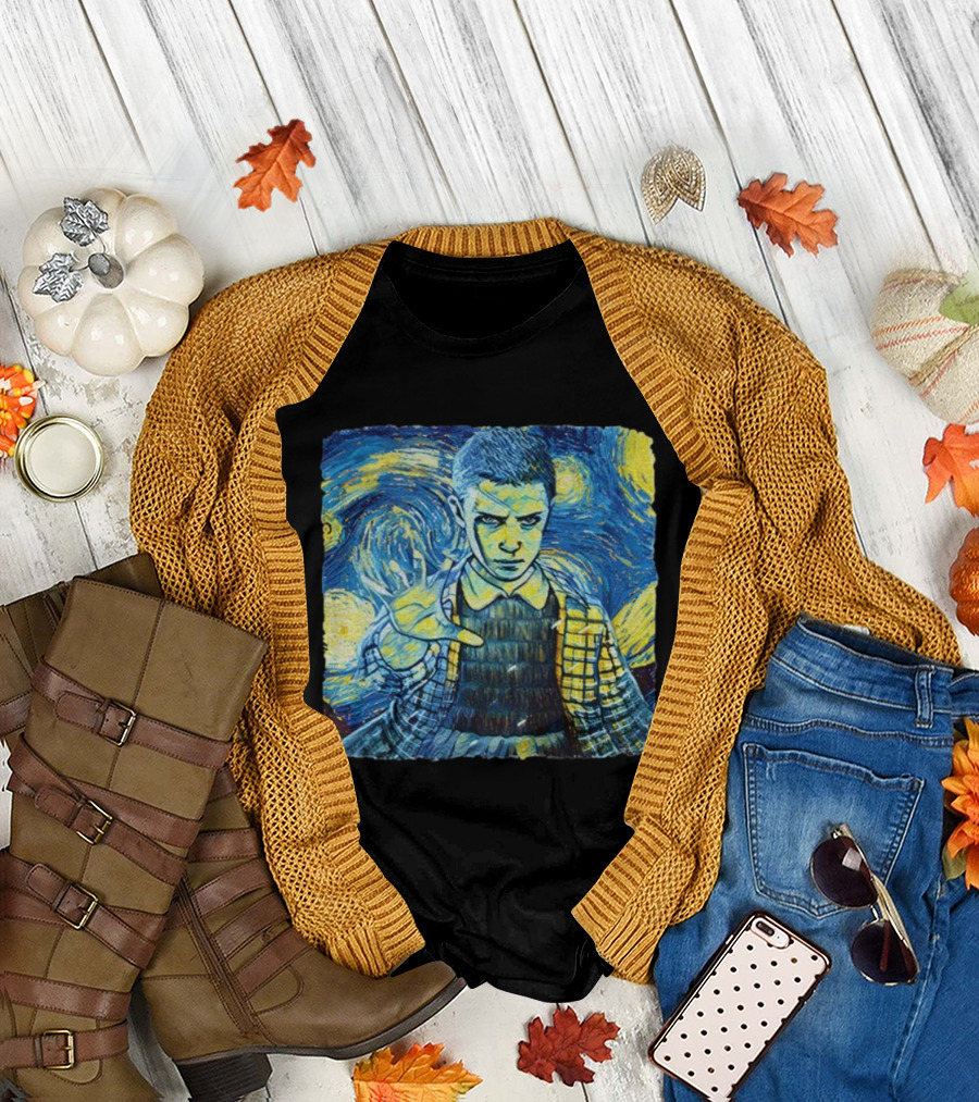 Eleven Starry Night Van Gogh Stranger Things Fusion Painting Style T-Shirt