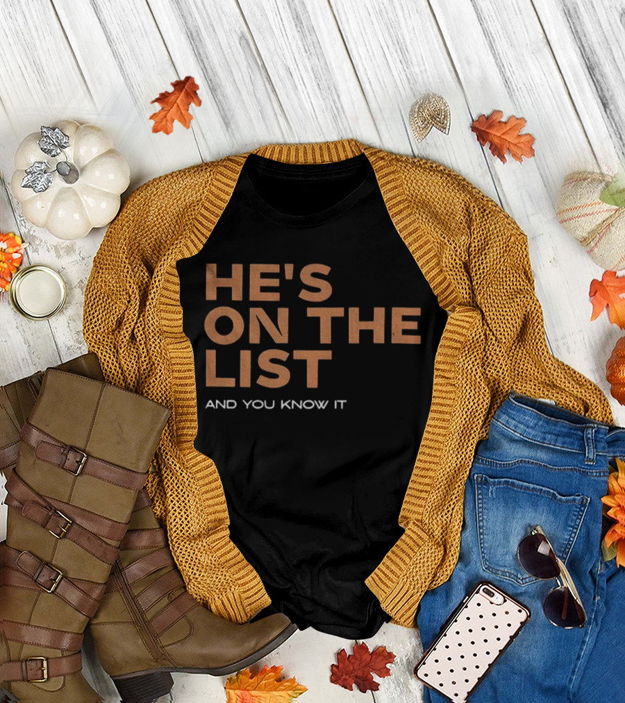 The He's on the List and You Know It Phrase T-shirt is designed for everyday wear and a consistent fit. Fabric is pre-shrunk ring-spun cotton with durable stitching. See the size chart below for exact measurements.