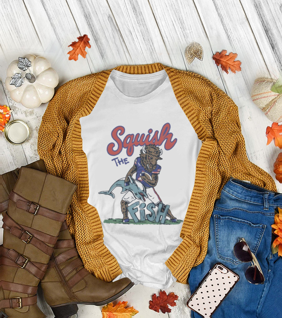 Squish The Fish Buffalo Bills Football Rivalry Buffalo Mascot Vs. Dolphin T-Shirt