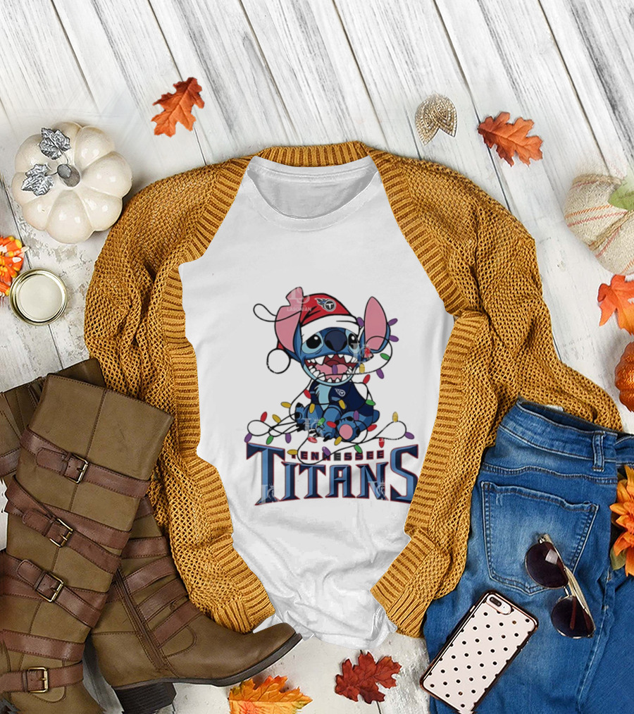 Tennessee Titans Stitch Christmas Lights Ornament T-Shirt