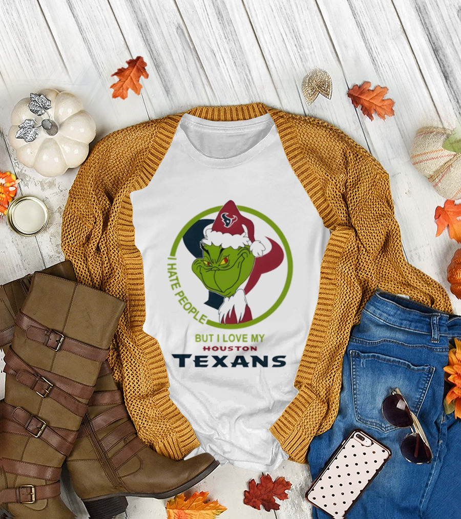 Houston Texans Grinch Christmas I Hate People But Love My Texans T-Shirt