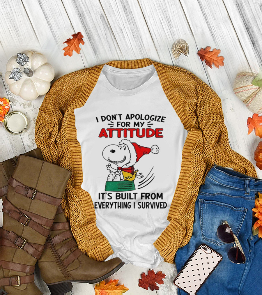 Snoopy Santa Hat I Don't Apologize For My Attitude It's Built From Everything I Survived Christmas T-Shirt