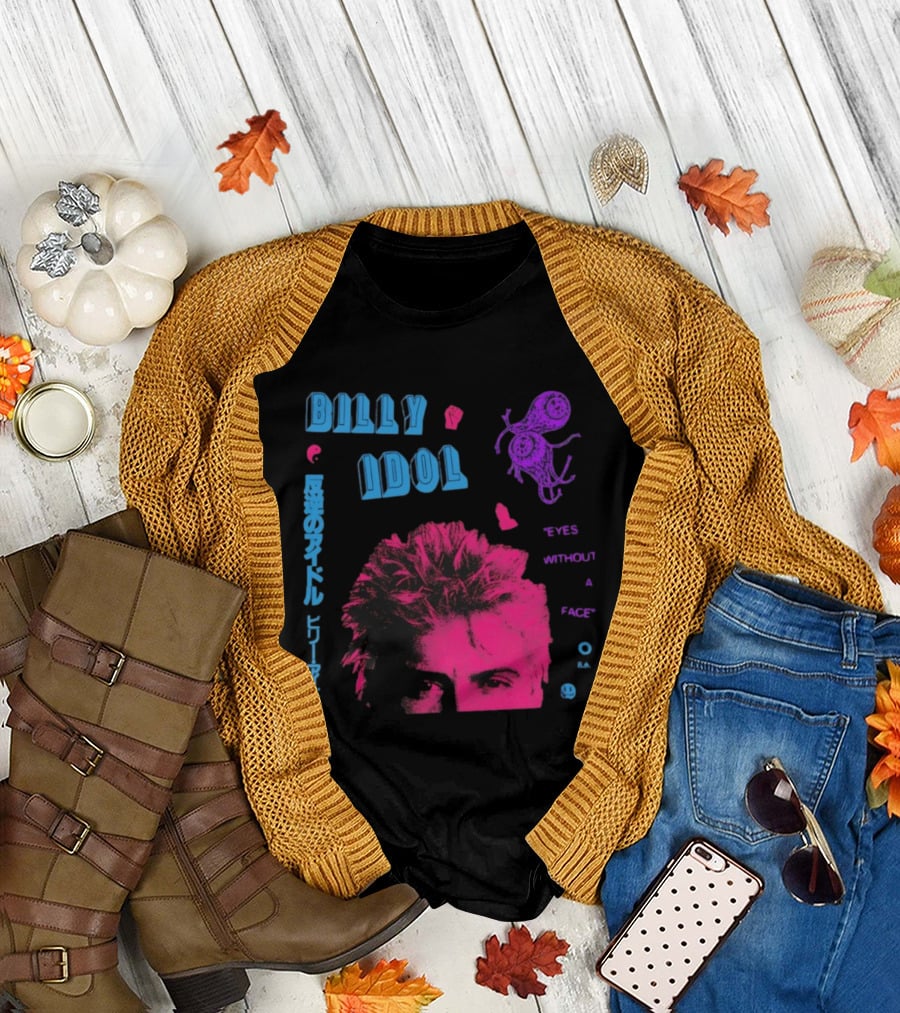 Billy Idol Eyes Without A Face Japanese Text Retro Style T-Shirt
