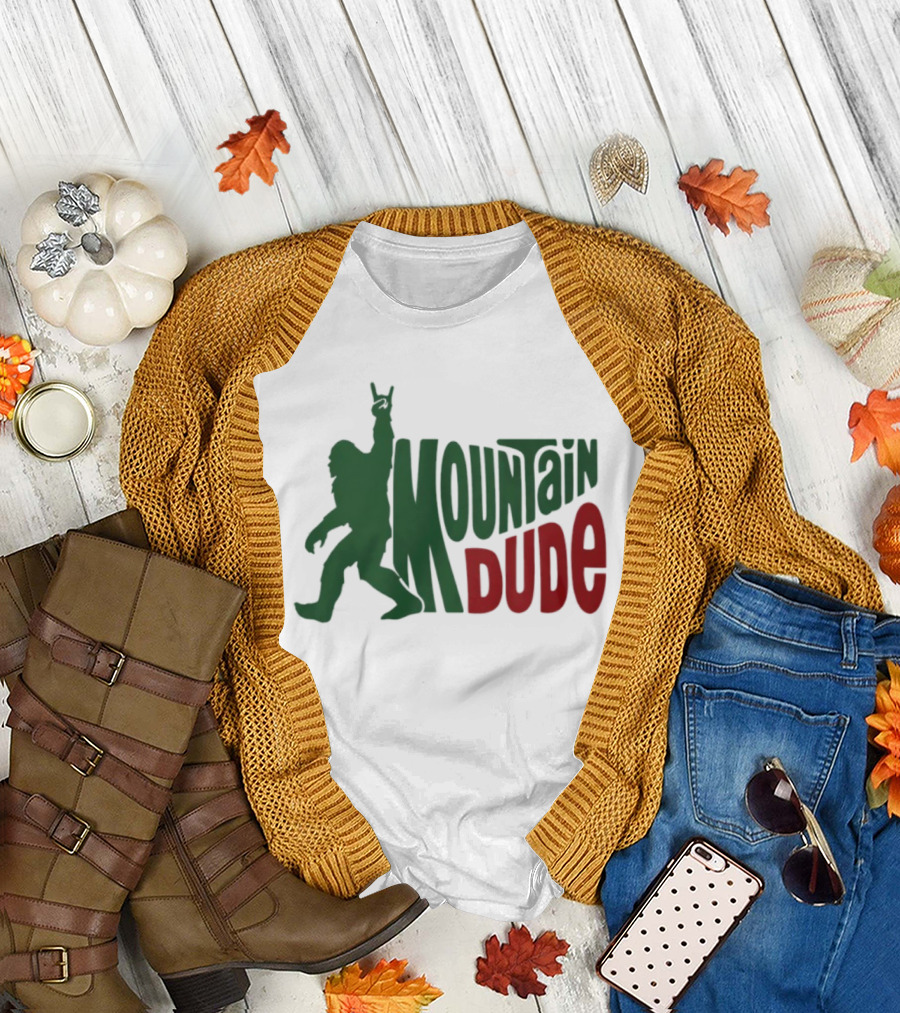 Bigfoot Mountain Dude Dark Green Silhouette With Red Text T-Shirt