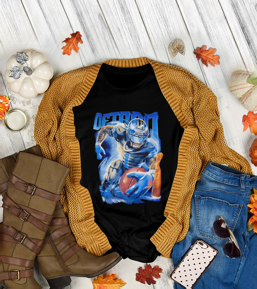 Detroit Football Player Blue Burst Action Art T-Shirt
