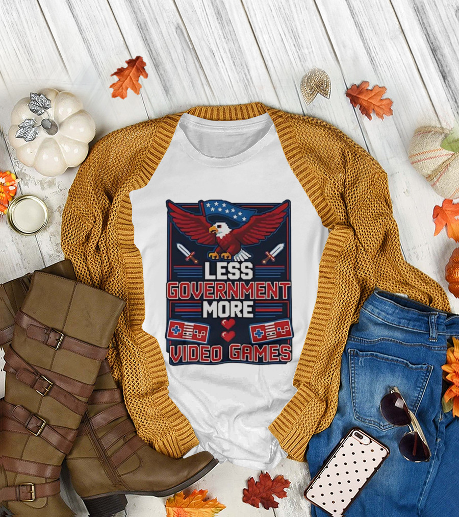 Less Government More Video Games Eagle Patriot Swords Retro Controllers T-Shirt