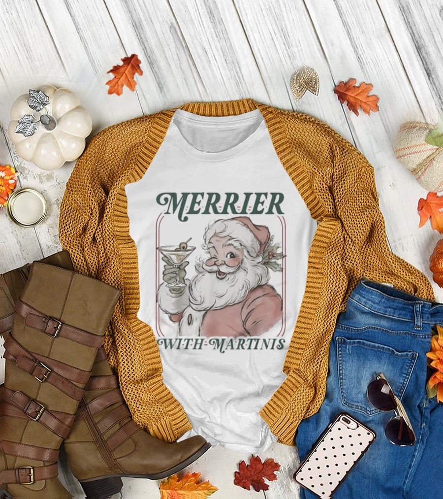 Merrier With Martinis Santa Christmas Cocktail T-Shirt