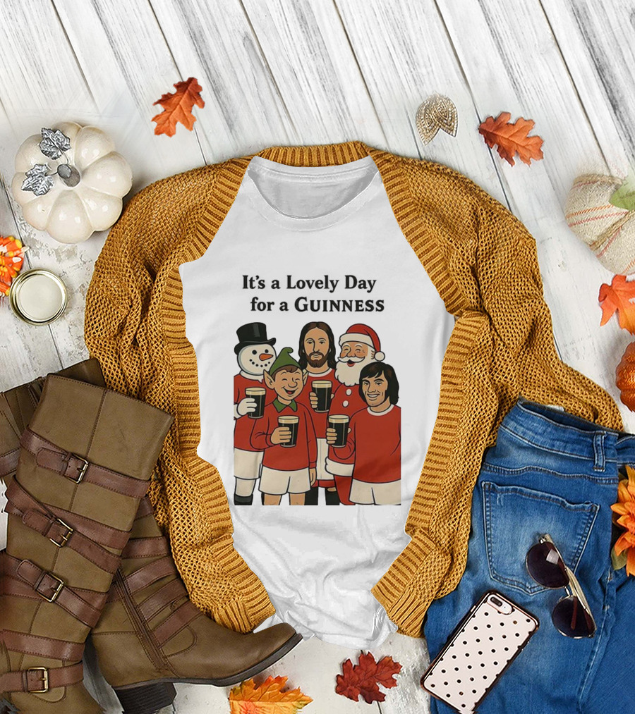 It's A Lovely Day For A Guinness Manchester United Christmas With Festive Characters T-Shirt