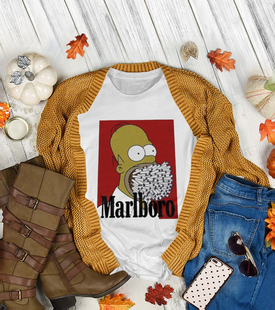 Homer Simpson Cigarette Mouth Marlboro Red Background T-Shirt