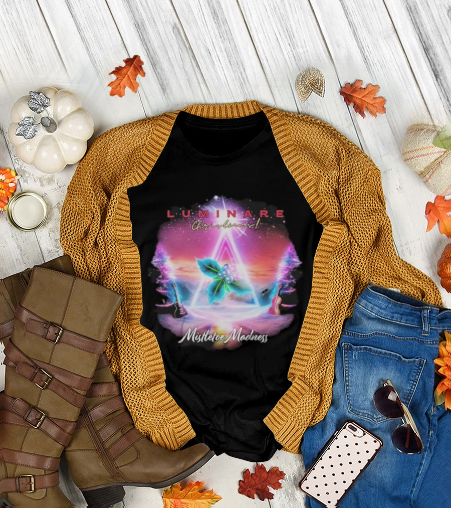 Luminare Christmas Mistletoe Madness Neon Triangle Guitar Violin T-Shirt
