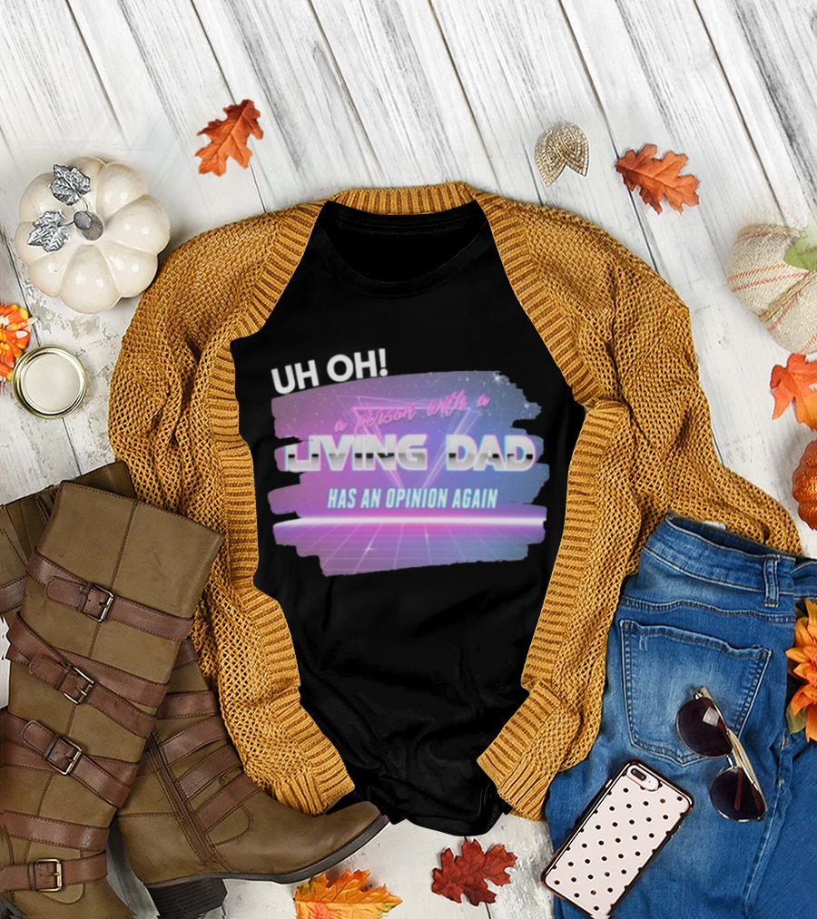 The Uh Oh A Person With A Living Dad Has An Opinion Again Retro Vaporwave Style T-shirt is designed for everyday wear and a consistent fit. Fabric is pre-shrunk ring-spun cotton with durable stitching. See the size chart below for exact measurements.