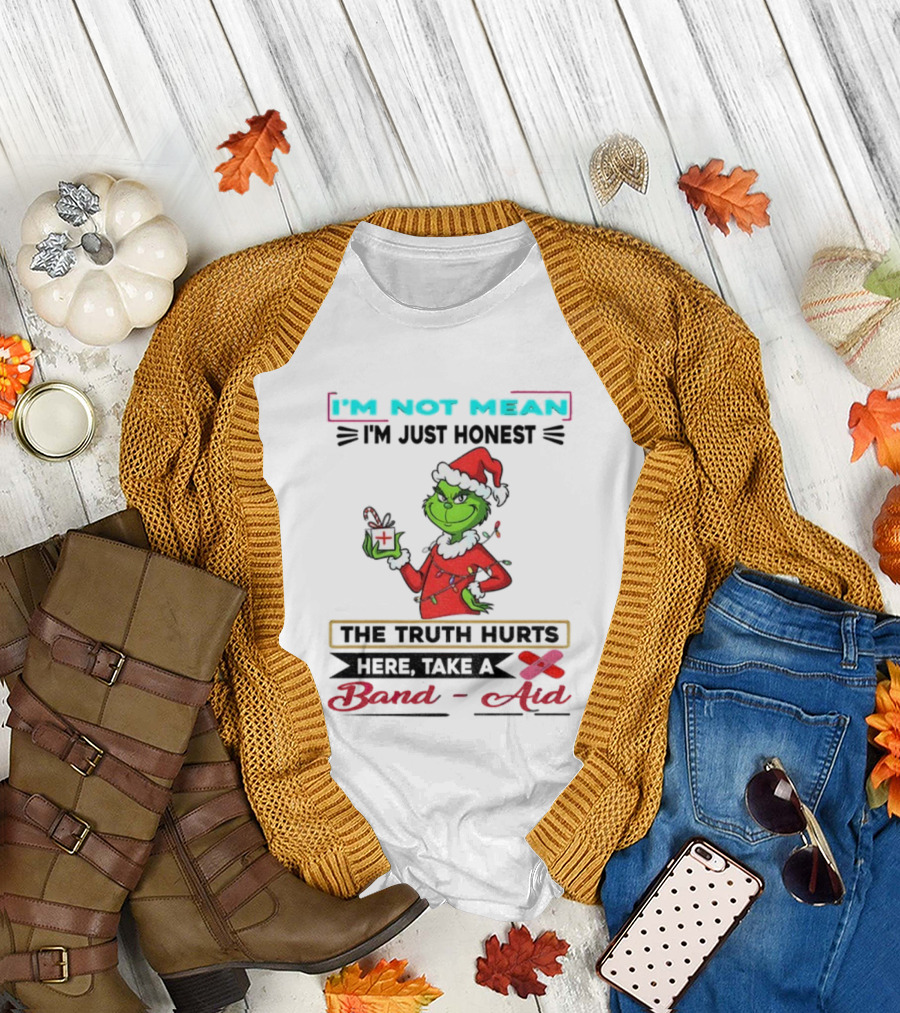 Grinch Santa Hat I'm Not Mean I'm Just Honest The Truth Hurts Here Take A Band Aid Christmas T-Shirt