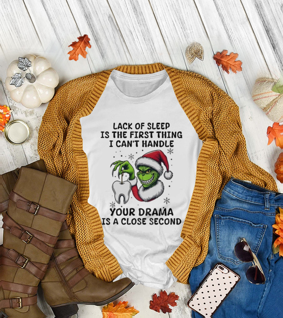Lack Of Sleep Is The First Thing I Can’t Handle Your Drama Is A Close Second Grinch Santa Tooth T-Shirt