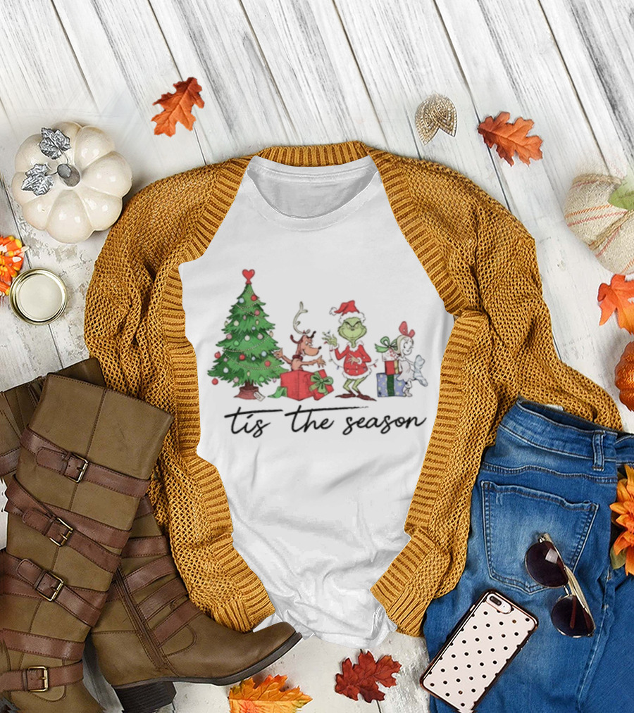 Max Grinch Cindy Lou Who Reindeer Santa Hat Tis The Season Merry Christmas Tree T-Shirt