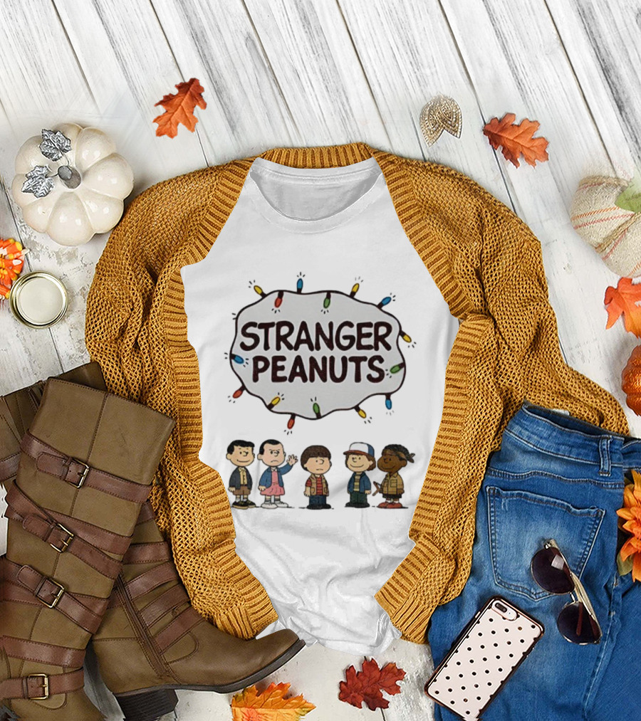 Stranger Peanuts Characters Christmas Lights Mashup T-Shirt