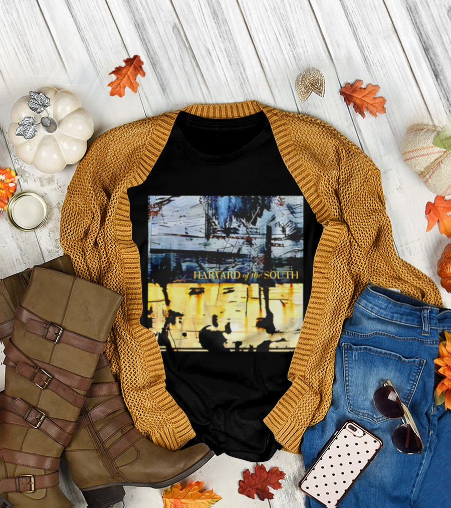 The Harvard of the South Abstract Expressionist Album Cover Art T-shirt is designed for everyday wear and a consistent fit. Fabric is pre-shrunk ring-spun cotton with durable stitching. See the size chart below for exact measurements.