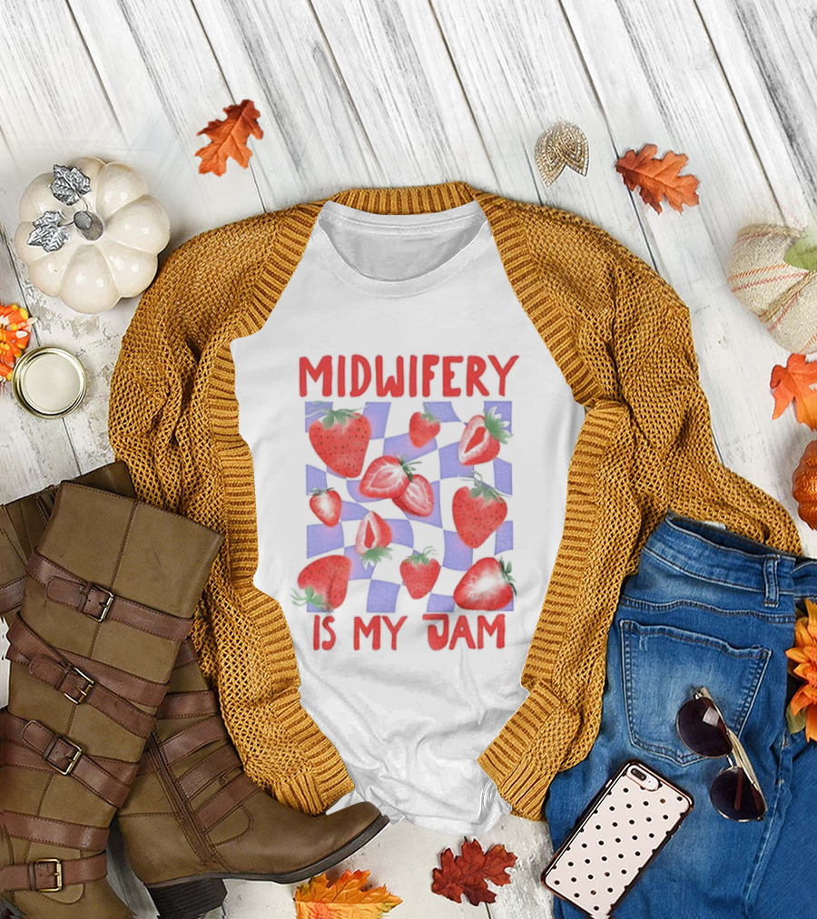 Midwifery Is My Jam Strawberry Pattern T-Shirt