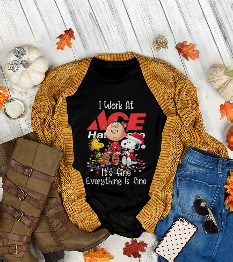 Peanuts Characters Christmas Lights I Work At Ace Hardware It's Fine Everything Is Fine T-Shirt