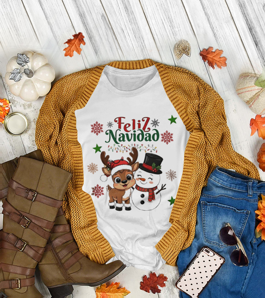 Feliz Navidad Christmas Reindeer And Snowman Holiday Theme T-Shirt