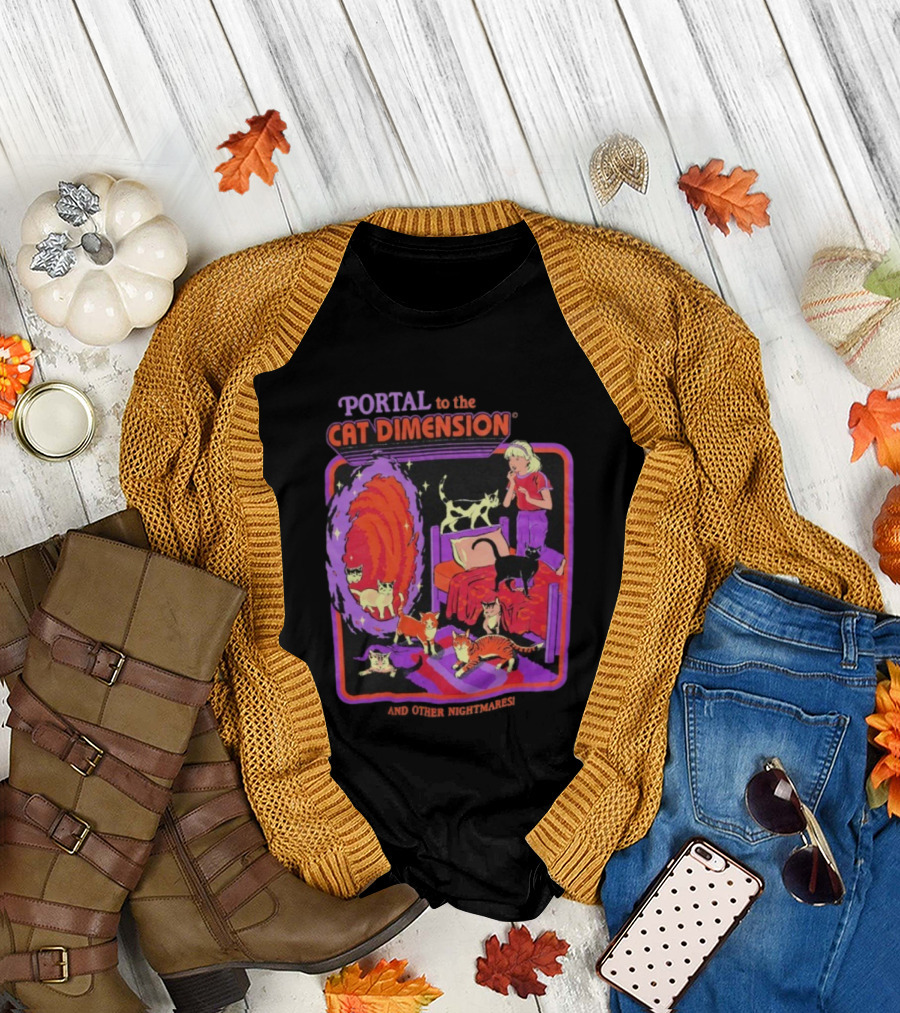 Portal To The Cat Dimension Vintage Nightmare Scene With Cats And Bed T-Shirt
