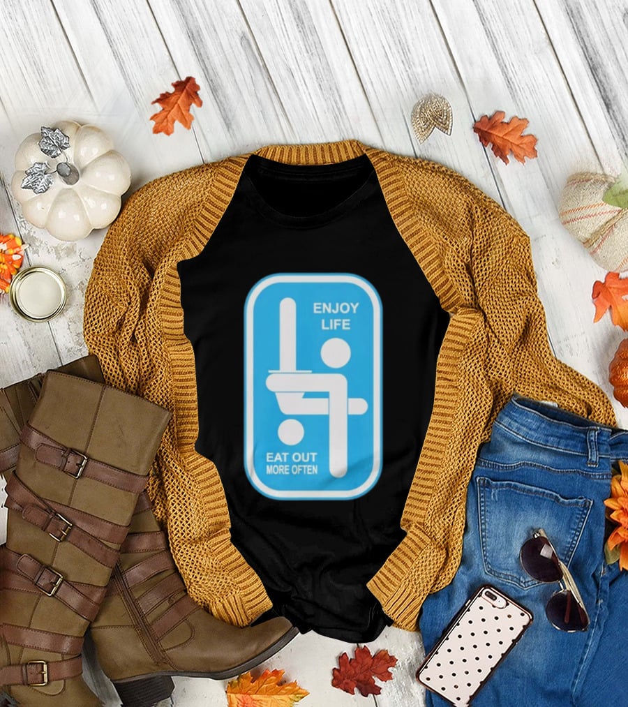 Enjoy Life Eat Out More Often Blue Sign With Humorous Symbol T-Shirt