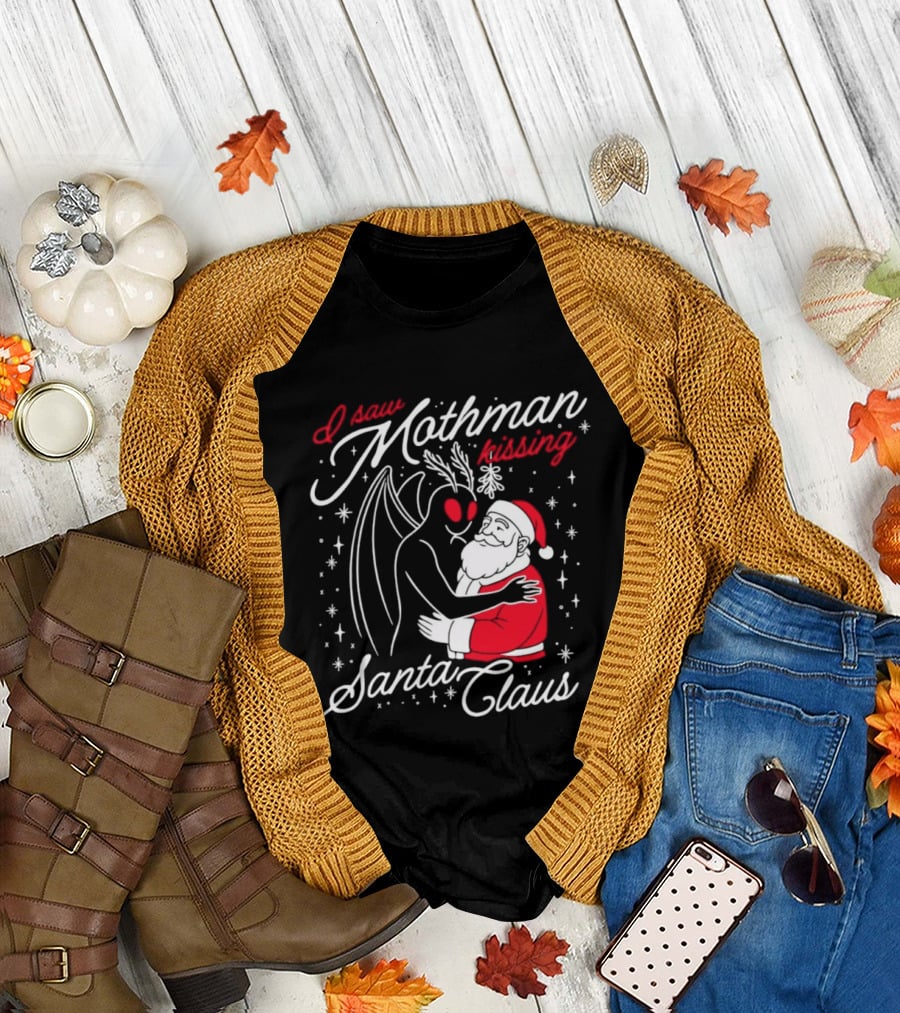 I Saw Mothman Kissing Santa Claus Christmas Holiday T-Shirt