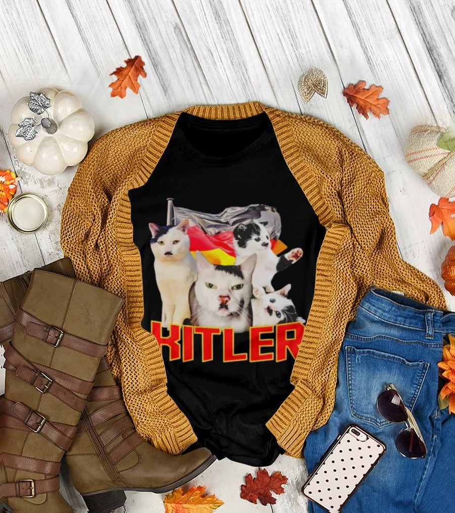 The Kitler Cat Meme German Flag Humor T-shirt is designed for everyday wear and a consistent fit. Fabric is pre-shrunk ring-spun cotton with durable stitching. See the size chart below for exact measurements.