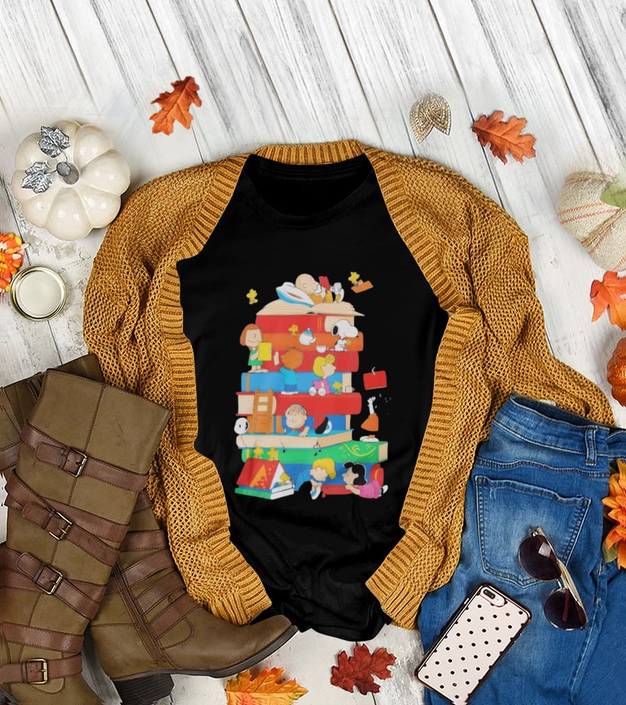 Snoopy Friends Peanuts Book Stack Reading Adventure T-Shirt