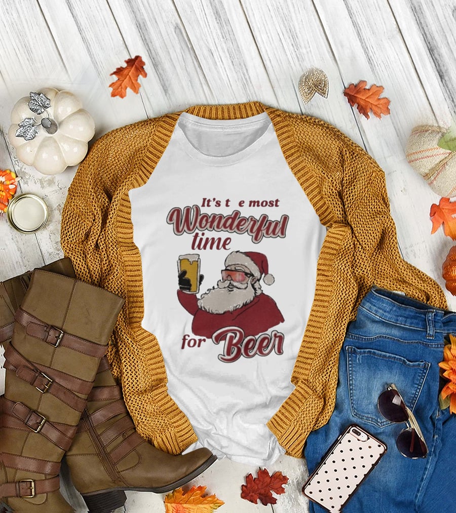 It's The Most Wonderful Time For Beer Christmas Santa T-Shirt