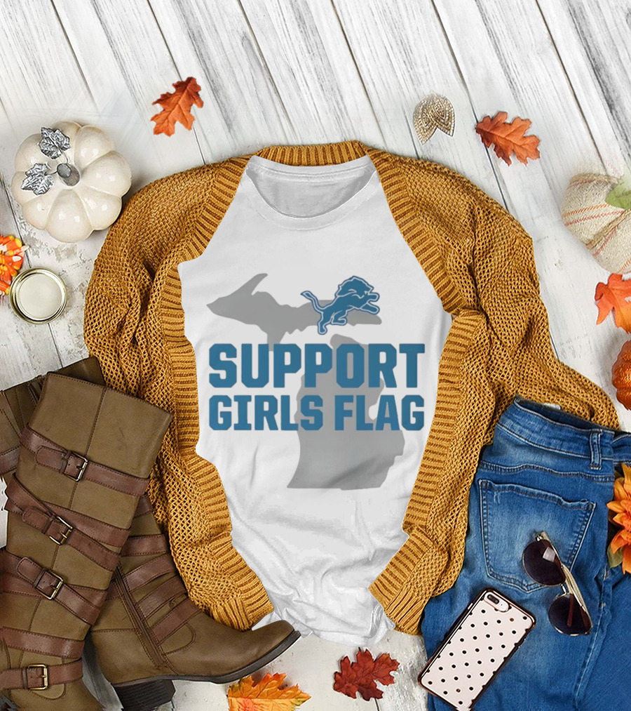 Detroit Lions Support Girls Flag Michigan Map T-Shirt