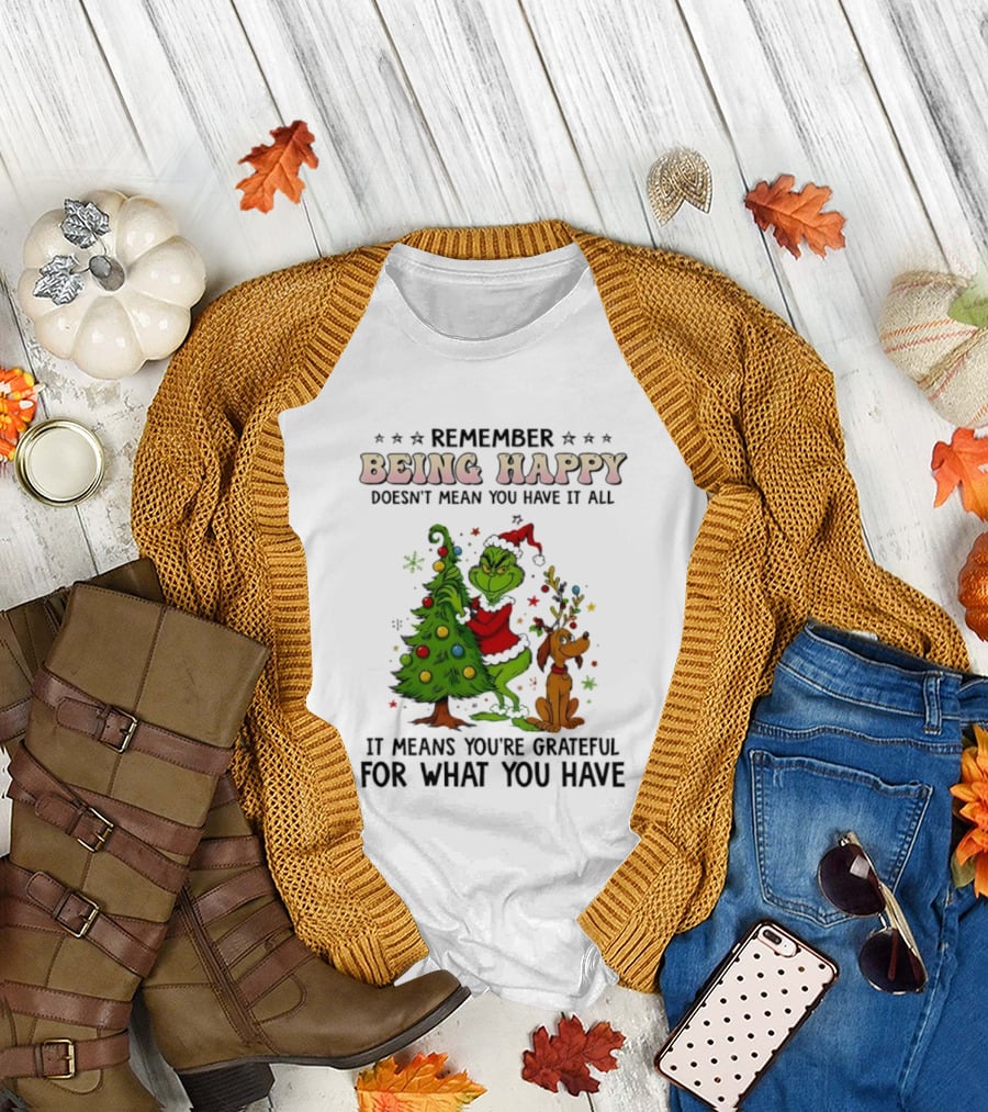 Being Happy Grateful Christmas Tree And Dog T-Shirt