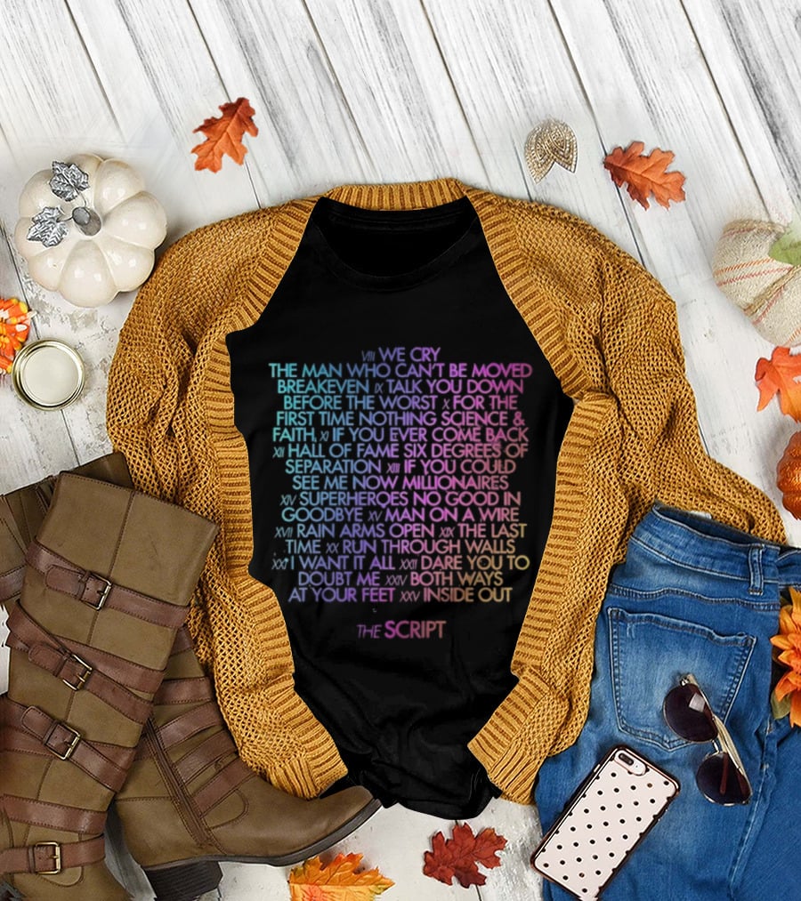How much will this The Script Store Merch Tracklisting Songs Live Like The Man Who Can't Be Moved shirt shrink?