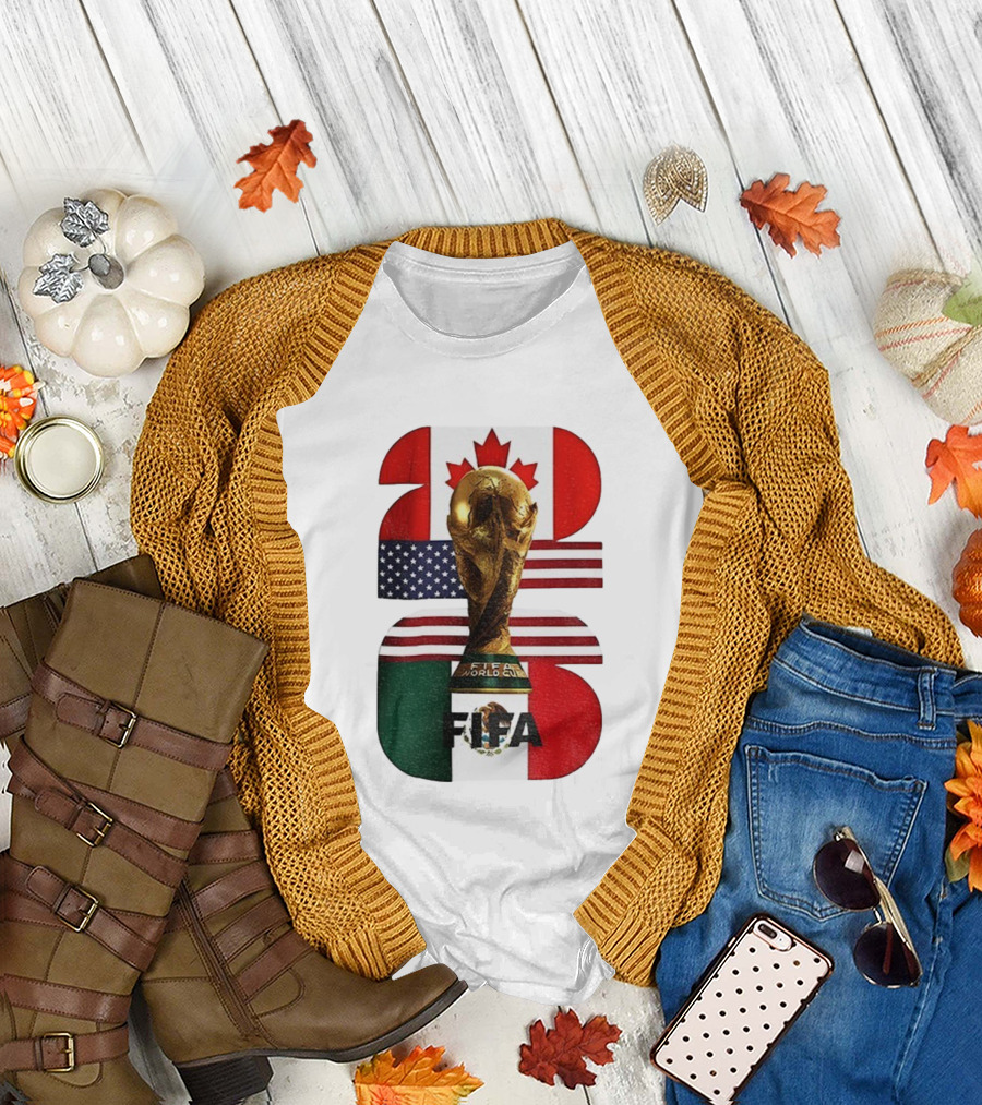 FIFA World Cup 2026 Canada USA Mexico Trophy Flags T-Shirt