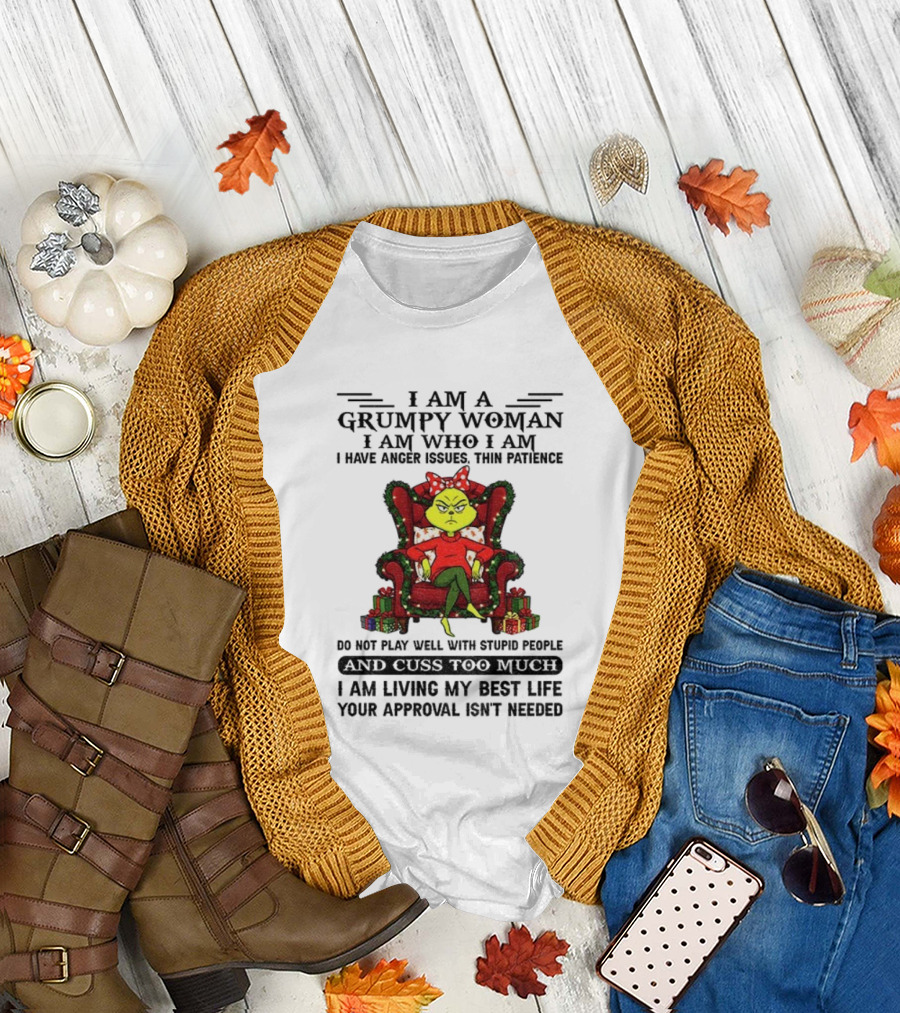 The Grinch Grumpy Woman I Am Who I Am Anger Issues Thin Patience Do Not Play Well With Stupid People Christmas T-shirt is designed for everyday wear and a consistent fit. Fabric is pre-shrunk ring-spun cotton with durable stitching. See the size chart below for exact measurements.