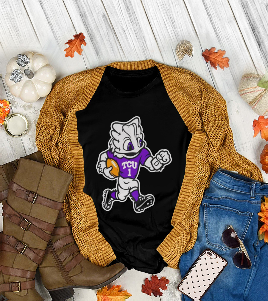 TCU SuperFrog Mascot Football Player With TCU 1 Jersey T-Shirt