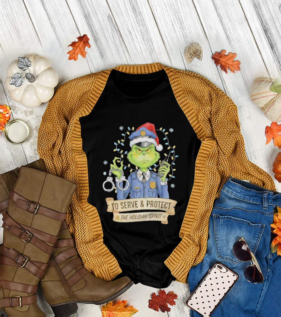 Grinch Police To Serve Protect Holiday Spirit Christmas Lights Handcuffs T-Shirt