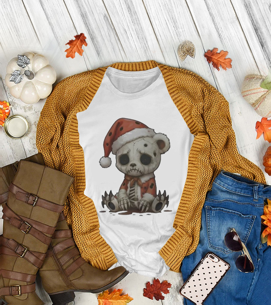 Merry & Boney Christmas Creepy Skeleton Teddy Bear Santa Hat T-Shirt