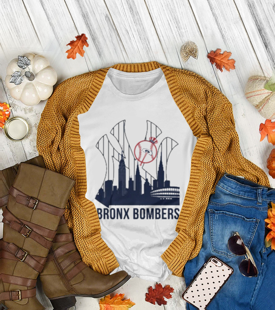 New York Yankees Bronx Bombers Skyline Classic Yankees Bat And Hat Icon T-Shirt