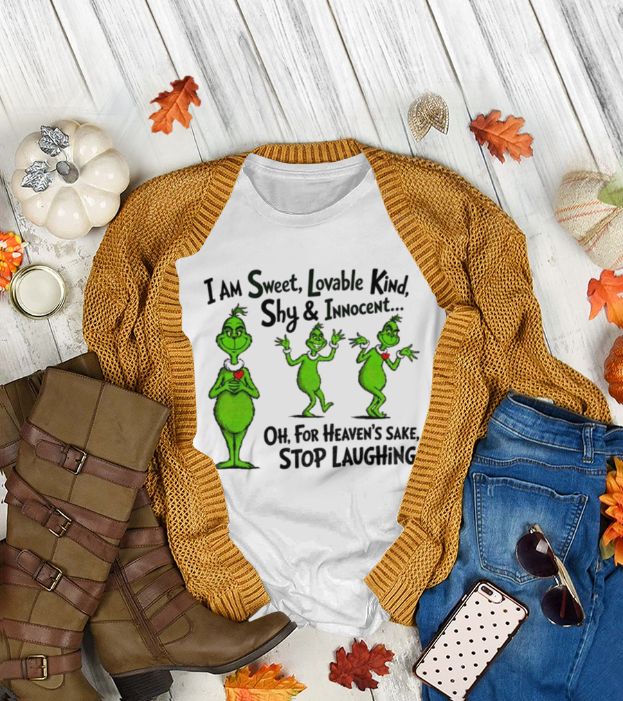 I Am Sweet Lovable Kind Shy Innocent Oh For Heaven's Sake Stop Laughing Grinch Christmas T-Shirt