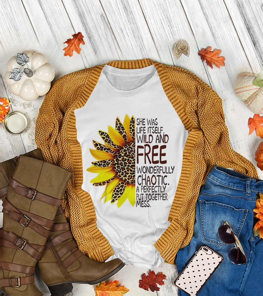 Sunflower She Was Life Itself Wild And Free Wonderfully Chaotic Perfectly Put Together Mess T-Shirt