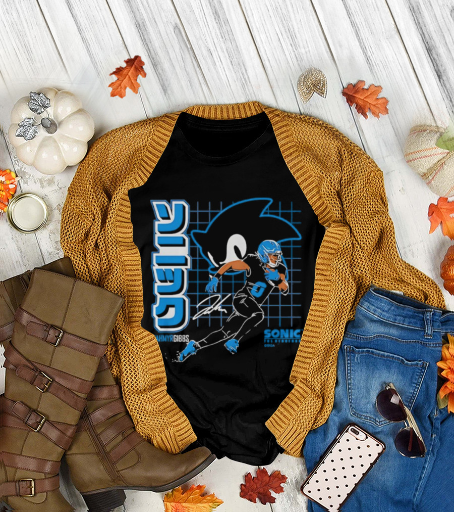 Jahmyr Gibbs The Hedgehog Signature Sega Sonic Football T-Shirt