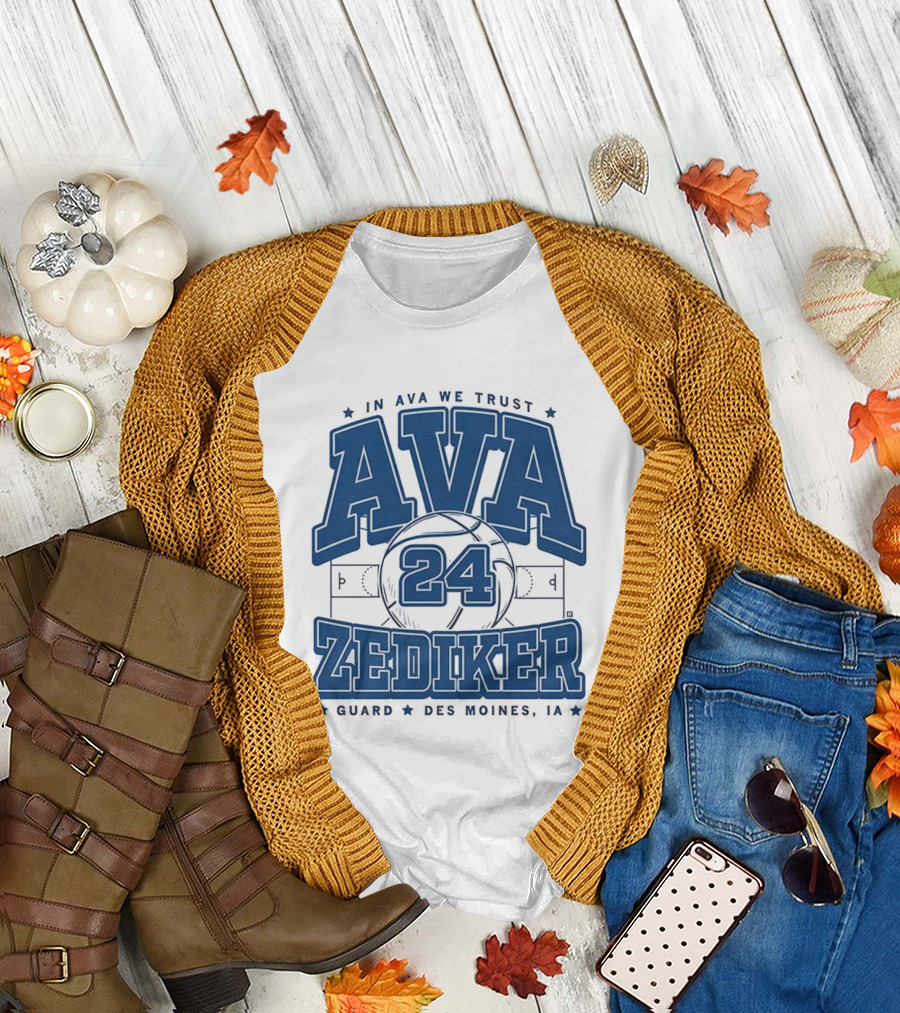 Ava Zediker 24 In Ava We Trust Creighton Bluejays Basketball Guard Des Moines T-Shirt
